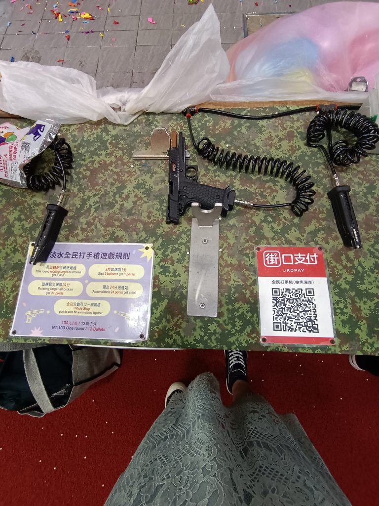 應該是第一或第二玩夜市遊戲,總之從小到大花錢玩遊戲機會是不太可能的,這次實在是手癢!?還蠻好的紓壓感,槍有點重,但還是可以雙手握著還是會偏一下,後座力有點大。想到警察要在行徑間,開槍射擊到不會斃命的部位真的很困難,警察大人辛苦了。((以前真的有想過當女警,可惜警大分數不低阿!))(。•́︿•̀。)沒辦法,不然我也是正義感十足的人!?