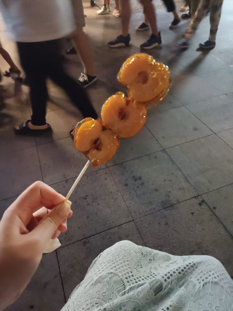聽到這個一支只要25的糖葫蘆,在眾多人圍繞購買的情況下,我也不例外,上前買了一支,距離上次吃糖葫蘆應該也有5年以上,味道就是糖葫蘆味,表皮脆脆的糖衣,與仙楂的酸,搭配剛好,不會太甜膩,一口接一口的快速的享用完畢。
